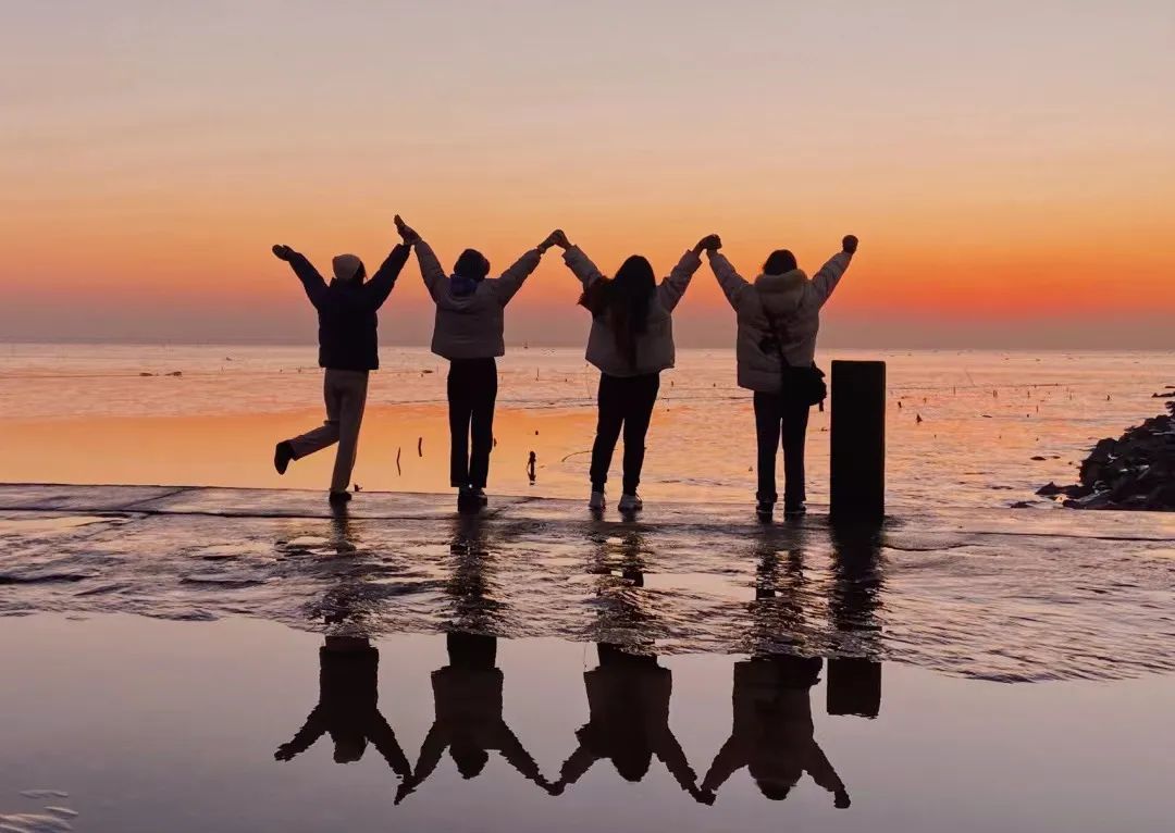 趁日出东方,和好友留下剪影也是不错的打卡纪念方式。
