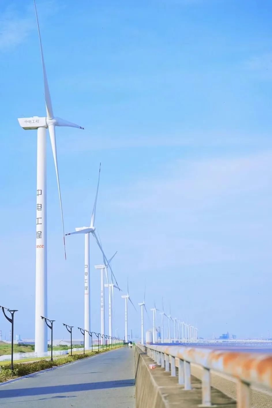 天气好的时候,也是淡蓝色的,配上岸上成排的“大风车”,小清新风也能拿捏。