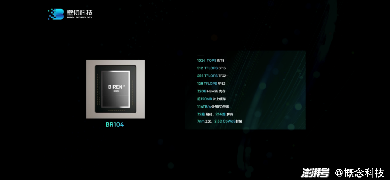 其他配置数据还包括2.5D封装在一起的64GBHBM2e内存,“超300MB片上缓存”,2.3TB/s外部I/O带宽,64路高清编码、512路高清解码加速。