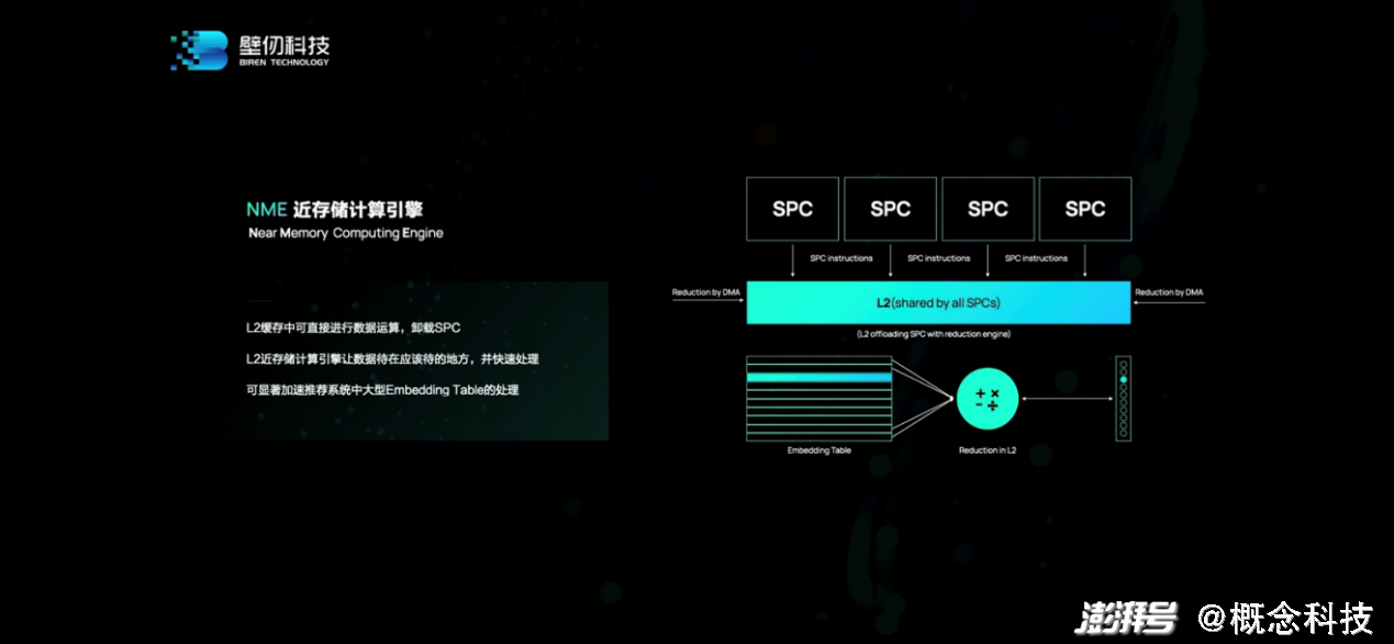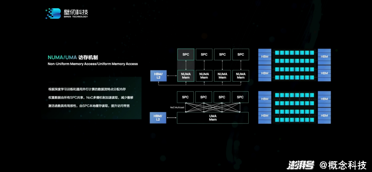 而NME近存计算引擎应当和前面提到的分布式L2cache也有关,“让计算发生在数据呆着的地方。数据走到哪儿,计算就应该在哪儿发生。”这里的“reductionengine”大约是关窍所在。NUMA/UMA访存机制也是考量不同数据特性,减少数据通讯的距离和次数。