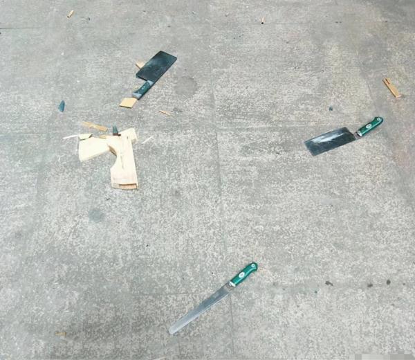 8月16日,成都温江一小区业主反映,四把菜刀及一个木质菜刀架突然从高处坠落到地上,所幸未造成人员受伤。