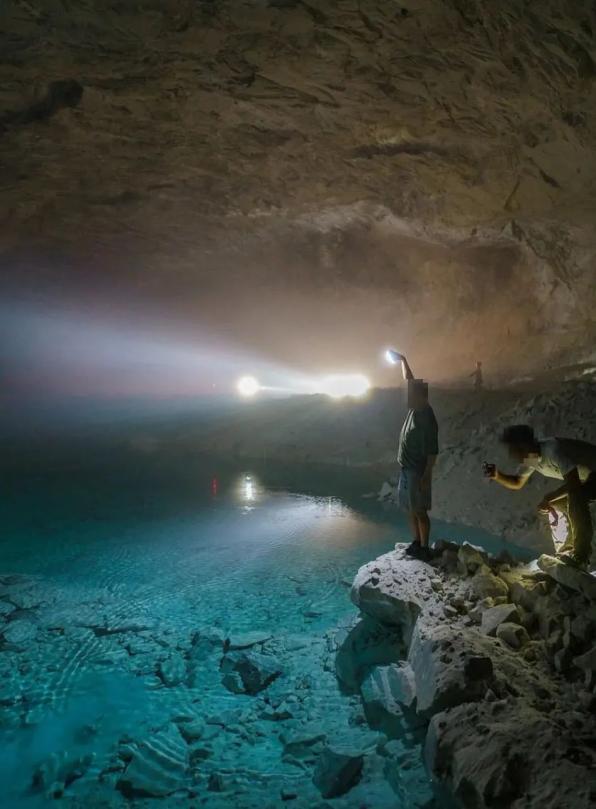 桐庐建德网红矿洞。图自小红书洞穴中时常会有地下河或者湖泊,只闻其声不见流水也是常有的事儿,这一步还是坚硬的岩石,说不定下一步就是深不可测的水潭。地下河的水位随着季节具有明显的变化,倘若遇到暴雨,一夜之间流水充满洞穴也极有可能。