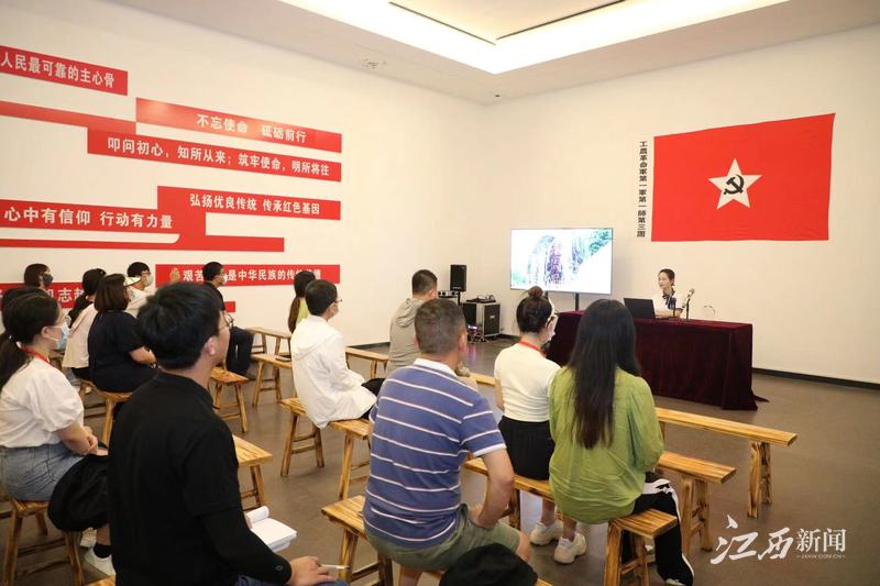 ▲采访团倾听红色课堂。摄影|焦亮辉