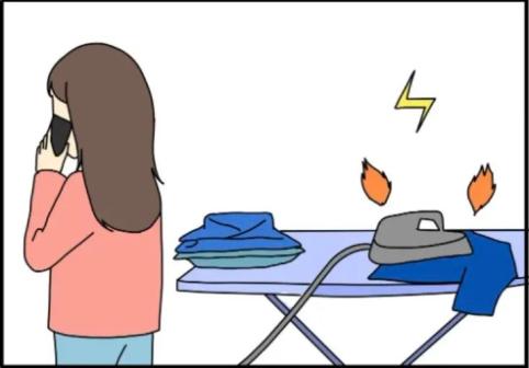 安全提醒电炉、电熨斗等电热器具,使用操作不当时,可能导致附近的可燃物受高温而起火,尤其是在高温干燥季节。不使用的电器记得及时切断电源哦!