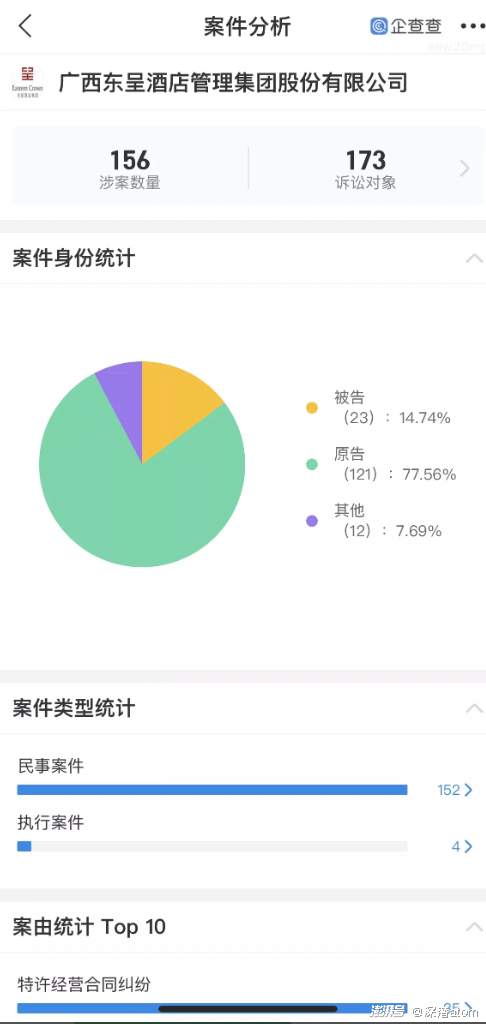 公开数据显示,作为企业主体的广西东呈酒店管理集团股份有限公司,共有156个司法案件。