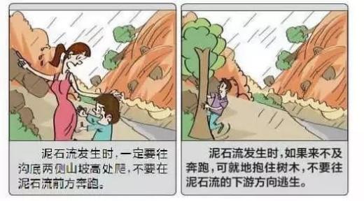 2.发生滑坡、泥石流时,应当向两侧逃离,切不可顺着滑坡、泥石流向上游或下游跑,不要停留在凹坡处。