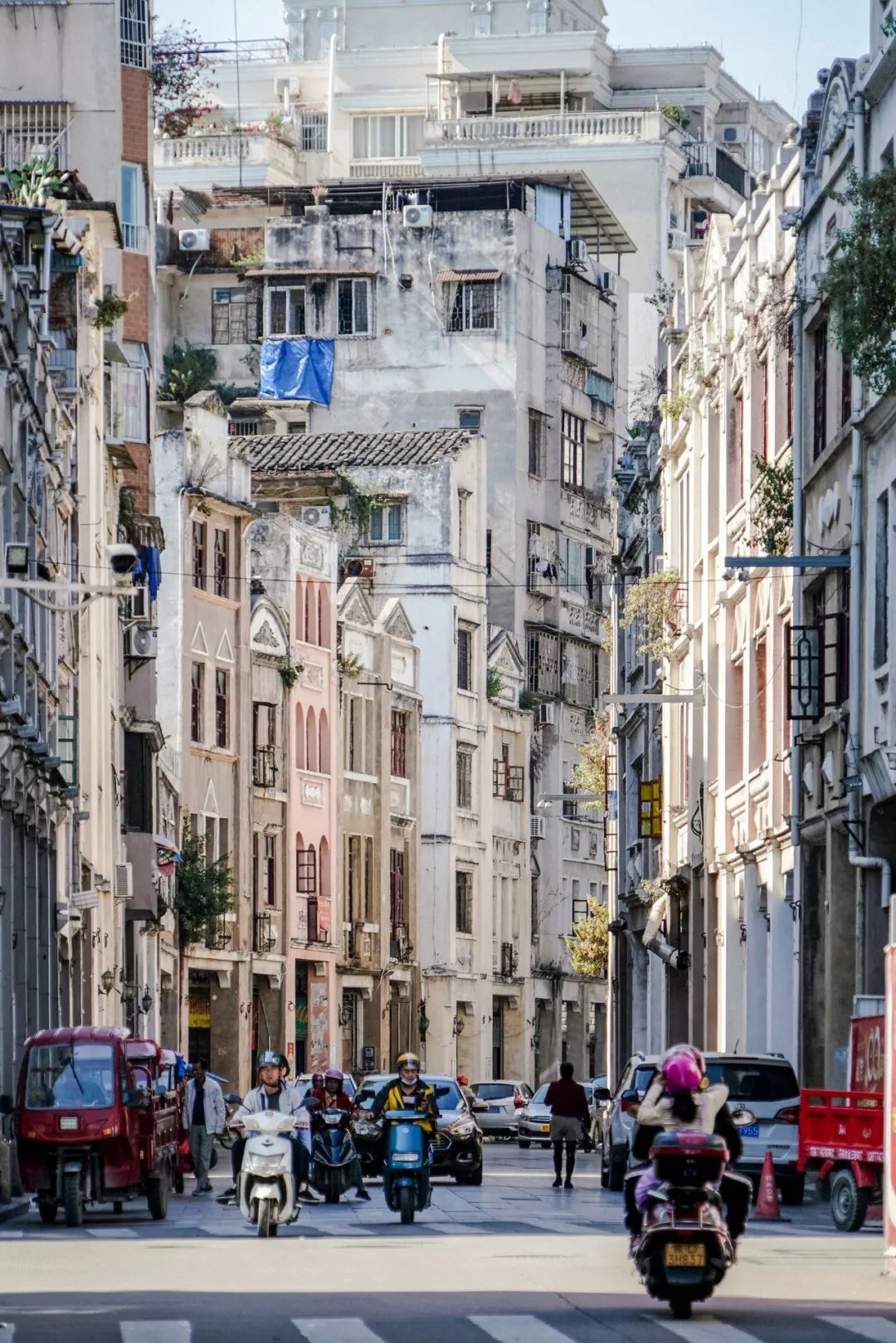 我们能在不少华南城市的热闹地段见到骑楼。这种源自东南亚、门脸被架空修成连廊的联排小楼,既能为行人遮阳挡雨,又为商铺的经营留有诸多便利,堪称热带城市公共空间的典范。