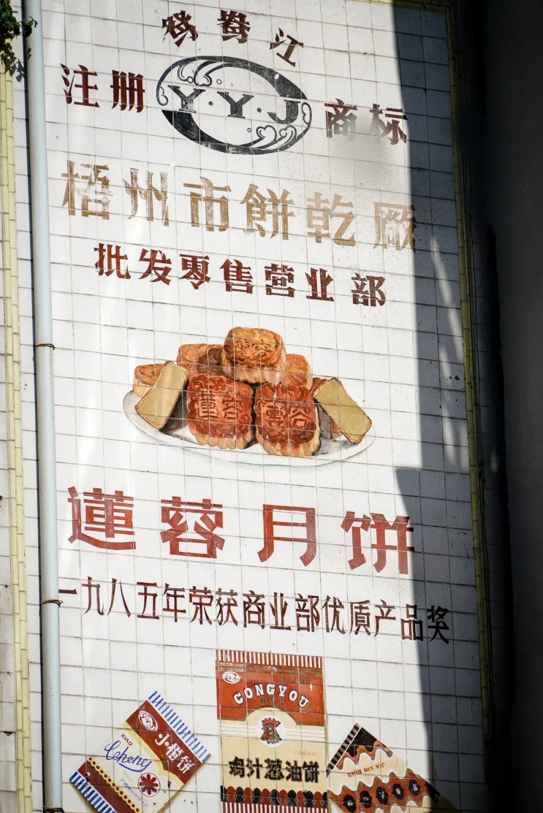 梧州市饼干厂的莲蓉月饼广告。摄影/钮妞