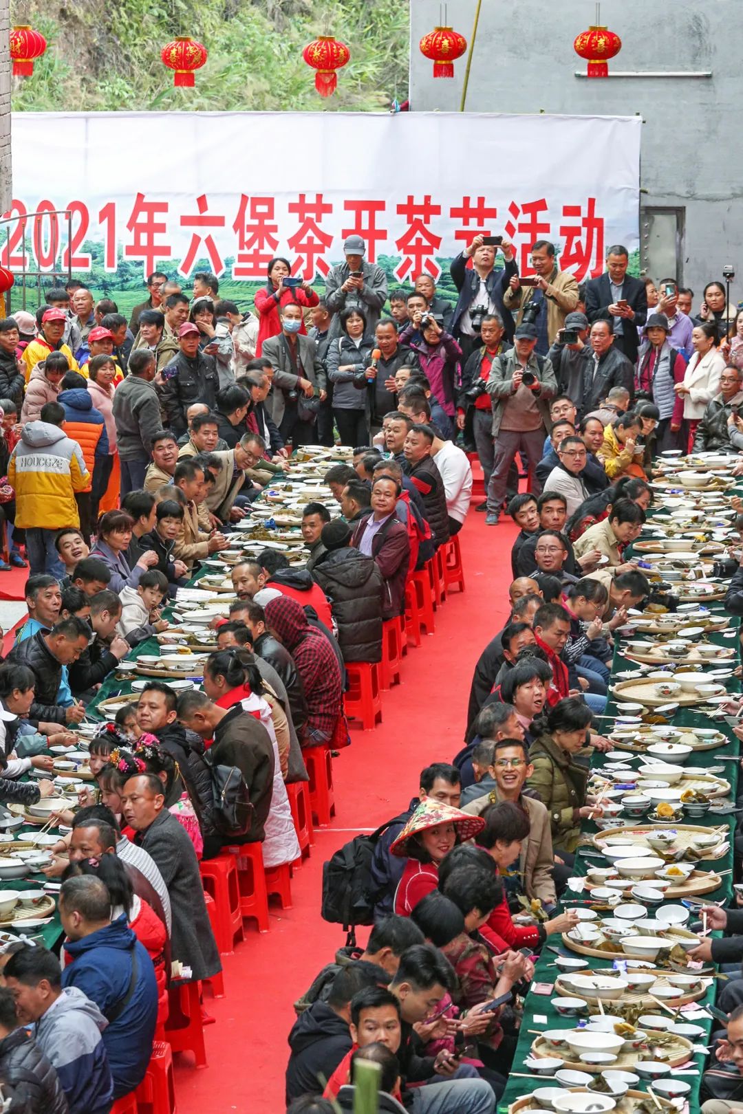 六堡茶开茶节上的流水席。摄影/张新
