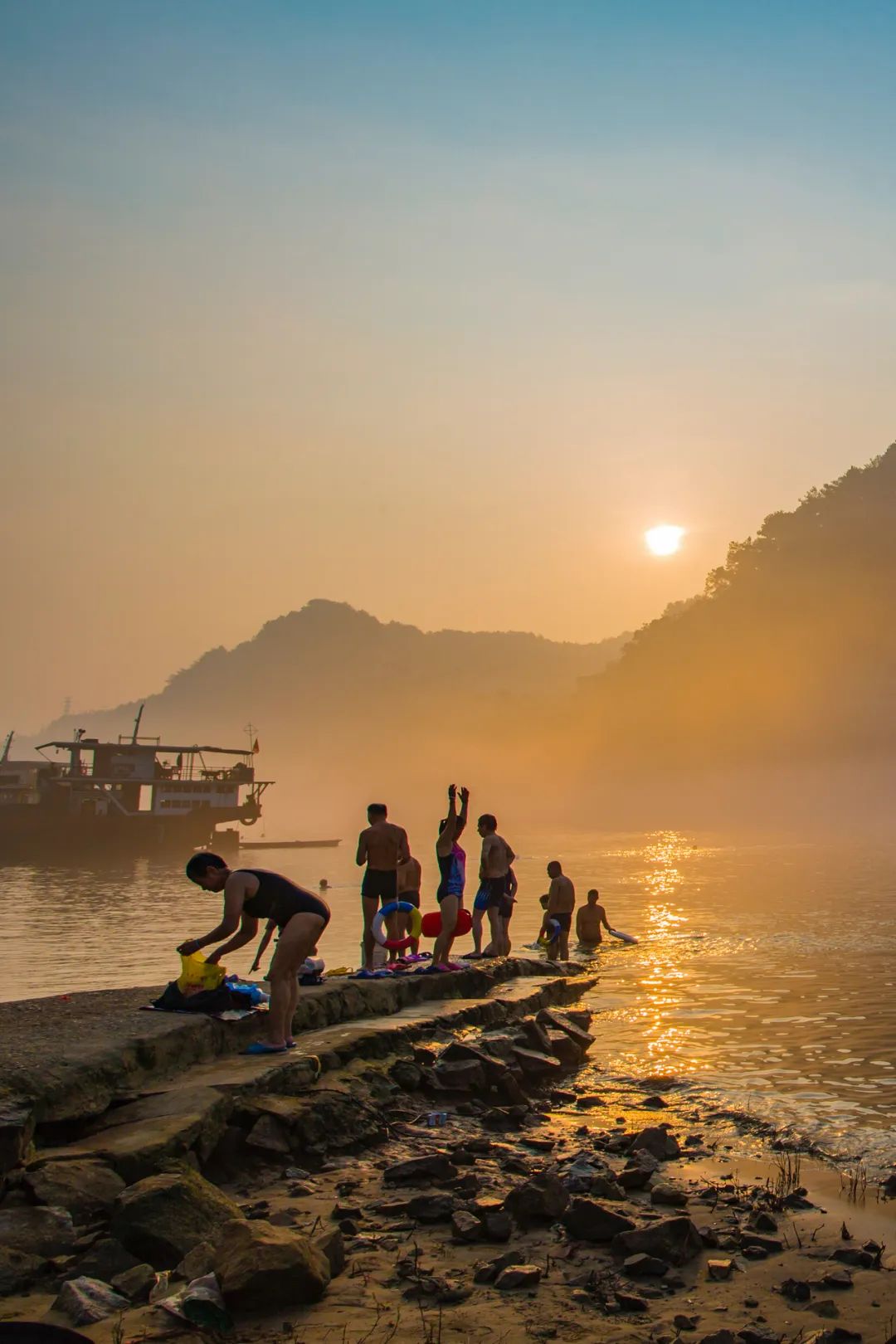 桂江 · 龙母 · 早泳人。摄影/张新