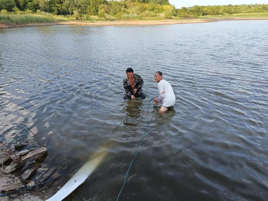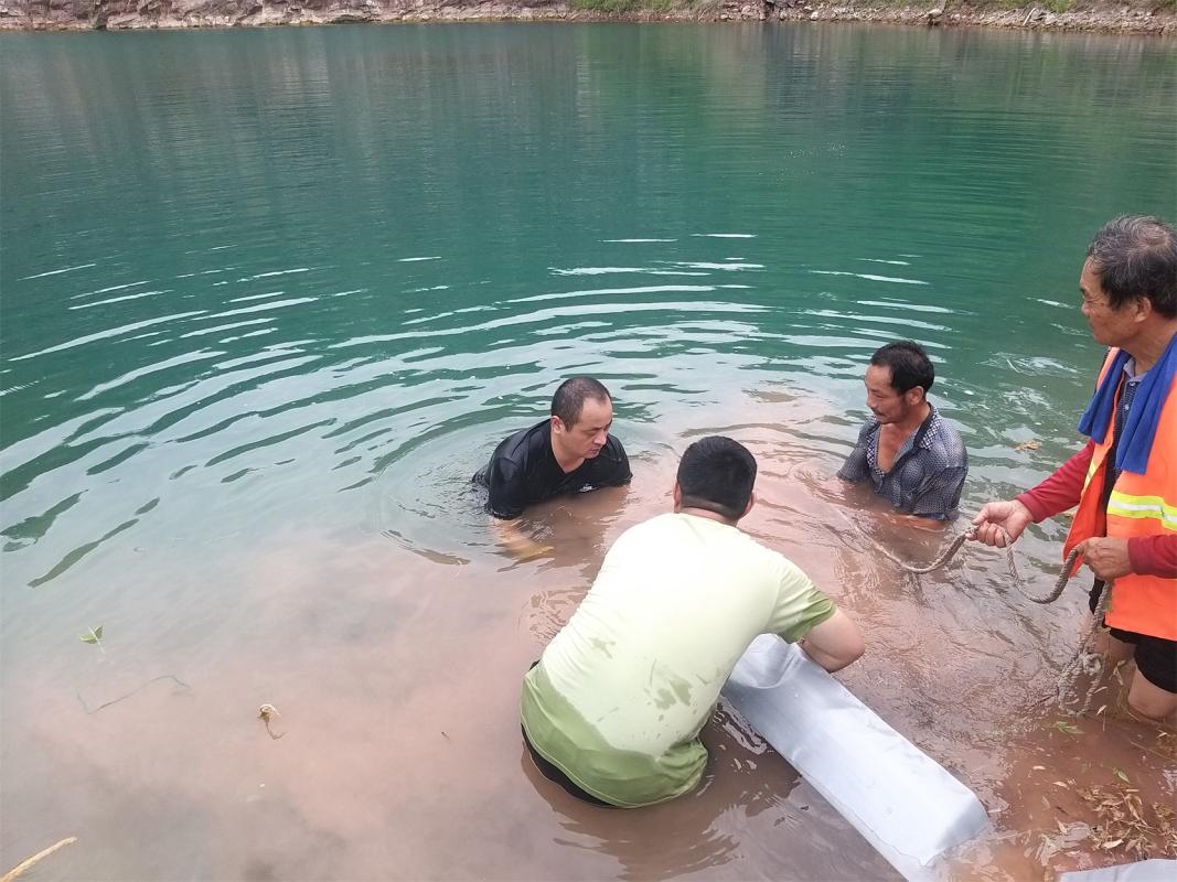 (周公山社区农户在水库中安装水泵—李林松供图)周公山社区农户多以种植水稻为生,为了缓解用水紧张、保障社区水稻田用水,社区居委会专门购买抽水泵,发动社区党员、热心群众参与到调水工作中来,从水量充足的水库往下游送水,为周边水稻及时解渴。