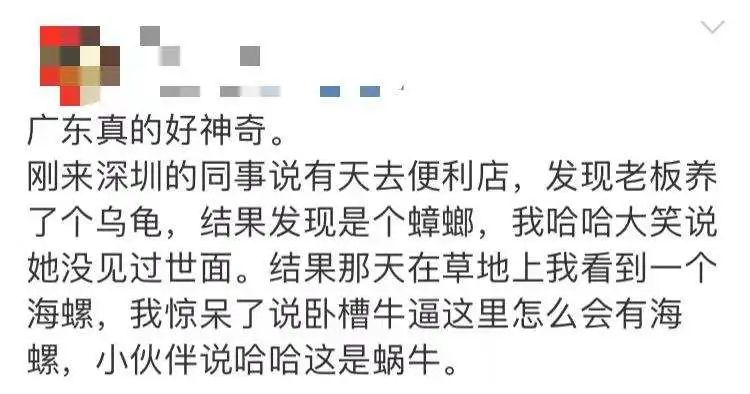 “之前去广东,觉得广东的海螺很神奇,居然可以在地上跑,后来才知道,那是蜗牛。”