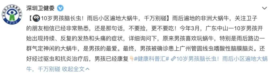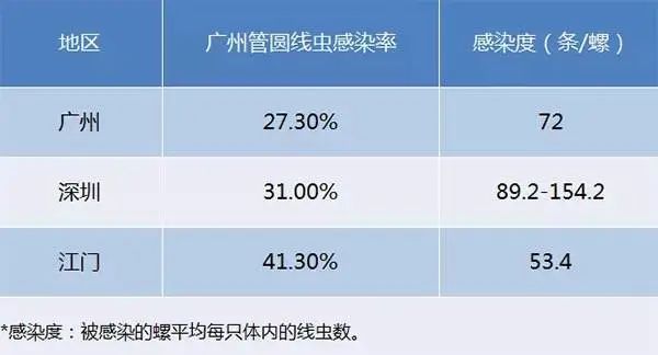 广州管圆线虫分布于热带、亚热带地区,终宿主主要是鼠类,1933年由我国学者陈心陶在广州发现从深圳市卫生健康委员会的研究中可以看出,一只蜗牛很可能就是一个军团。