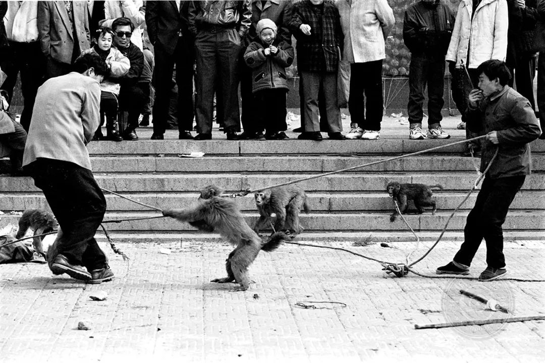 ▲《耍猴》(2001年2月13日,杭州路) 摄影:徐崇德扫街,必须具有一定的敏锐观察能力和迅速反应能力,以敏锐的观察力提前预知将要发生的事情,以迅速的反应能力及时捕捉到生动有趣的瞬间形象。扫街具有相当的不确定性,一没有特定的拍摄对象,二没有固定的拍摄地点,拍摄者也身处一种相对游离不定的状态,随意性很强,有时还需要不停地走动,偶遇某个感兴趣的人或事,随时进行抓拍、抢拍与偷拍。对于这个问题,罗伯特·卡帕说过:“一个摄影师应该有鹰的眼睛,马的力量,上帝的耐心。”
