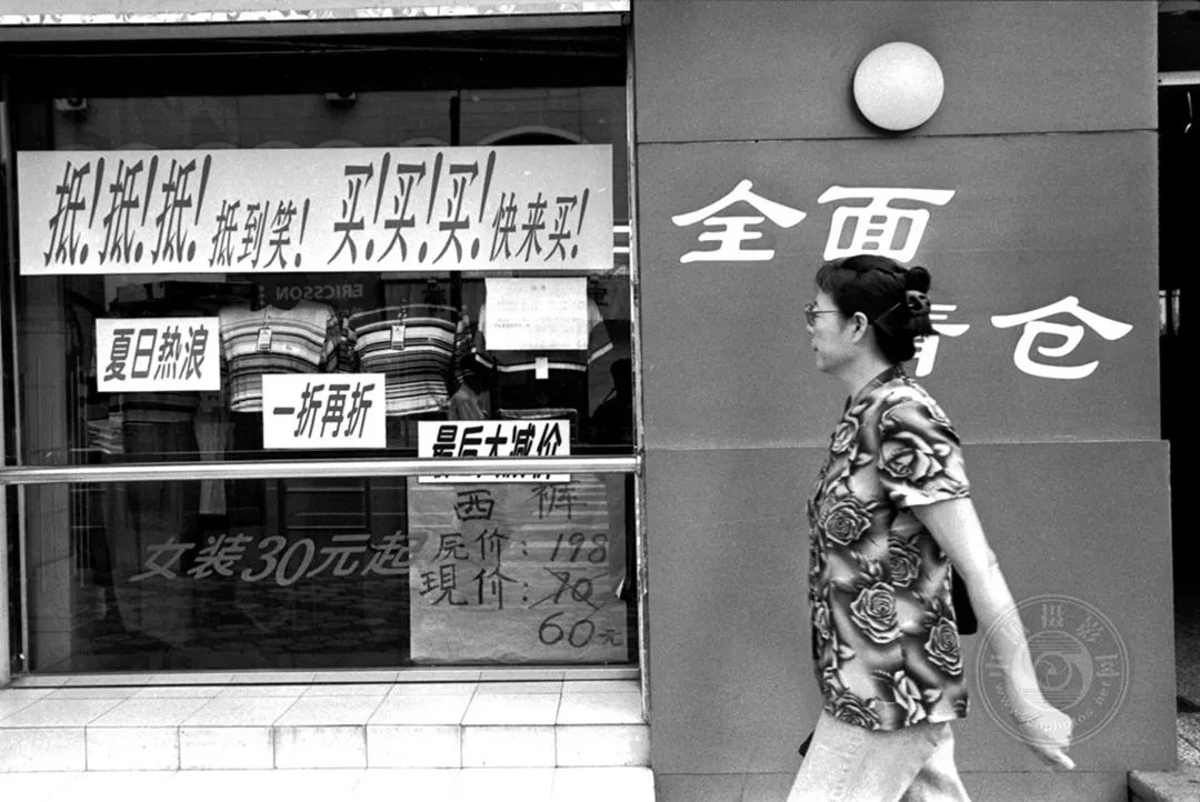 ▲《清仓打折甩卖》(2002年8月5日,中山路) 摄影:徐崇德