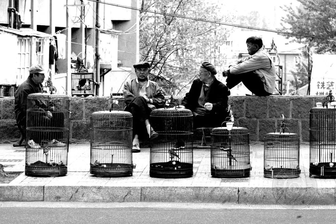 ▲《溜鸟老人》(2003年5月4日,抚顺路) 摄影:徐崇德
