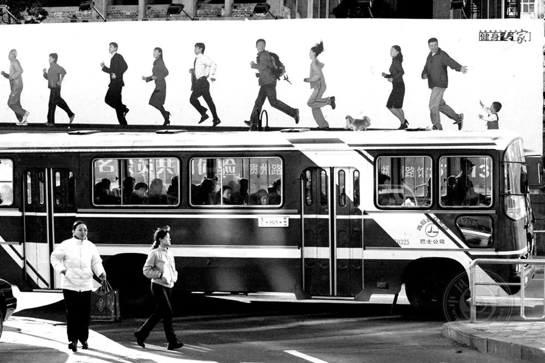 ▲《汽车上有英派斯广告》(2003年12月26日,中山路) 摄影:徐崇德扫街,重在一个扫字,它的精髓就在于真实记录大街上路人的日常生活动态,如实反映某个时代、某个地区的社会状态与人们的精神面貌。如布列松的街头摄影作品《男孩》,男孩子怀里抱着两个硕大的酒瓶,在镜头前显得神采飞扬,完全不能抑制住得意的神情,情绪十分自然真实而生动,彰显出布列松熟练的抓拍功夫与纪实风格。