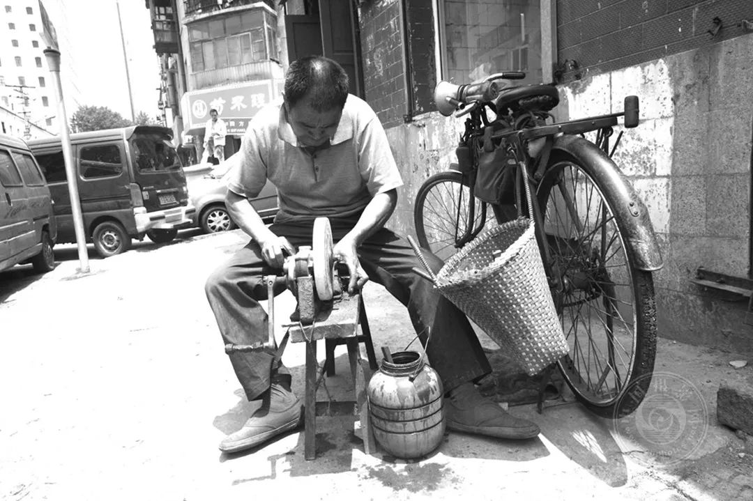 ▲《磨刀人》(2014年6月23日,易州路) 摄影:徐崇德