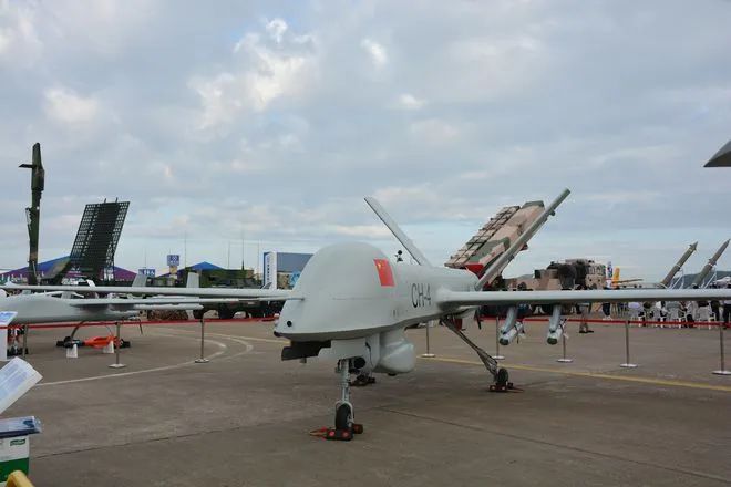 ▲航展上的“彩虹-4”报道称,彩虹-4无人机多次亮相国内外航展,备受关注。彩虹-4为代表的中空长航时察打一体无人机是中国公开的无人机中挂载能力最强、飞行性能最优的无人机,具备强大的攻击能力,在同类型无人机中处于领先地位,代表了中国无人机技术发展的高水平。