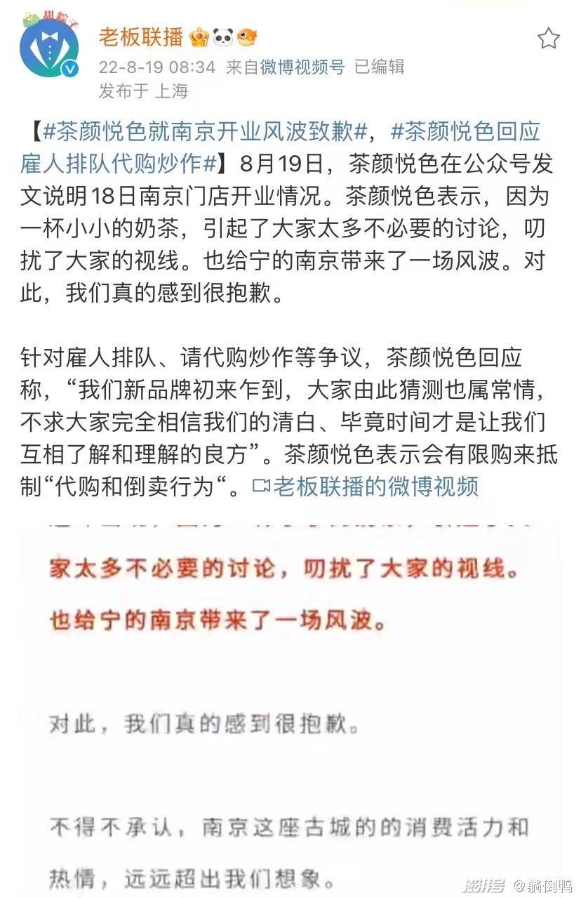 “我们新品牌初来乍到,大家由此猜测也属常情,不求大家完全相信我们的清白、毕竟时间才是让我们互相了解和理解的良方”。茶颜悦色表示会有限购来抵制“代购和倒卖行为”。