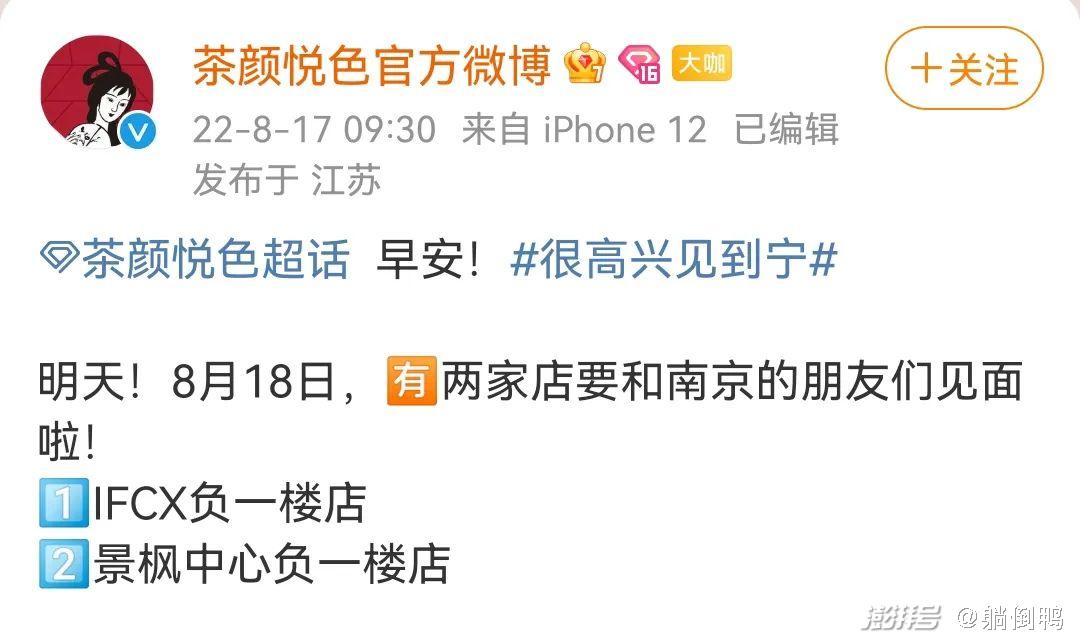 据了解,8月18日上午9点,茶颜悦色首次在南京落地的两家门店正式开业。