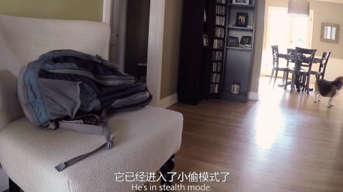 它又把鼻子凑近闻了闻,确认目标位置后迅速把牛肉干从背包里叼出来