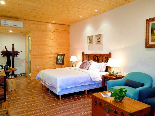 该民宿格调淡雅,朴素质感,以实木装饰为主导,每一个细节充斥着禅意之美,营造了禅意文化氛围。