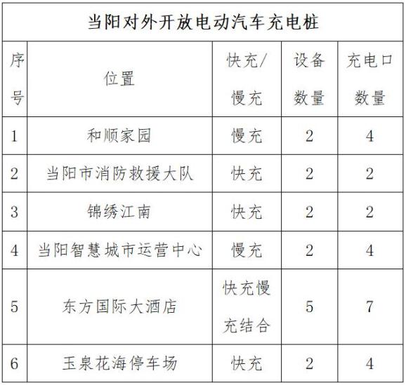 (不含当阳市公交总站和个人自建充电桩)