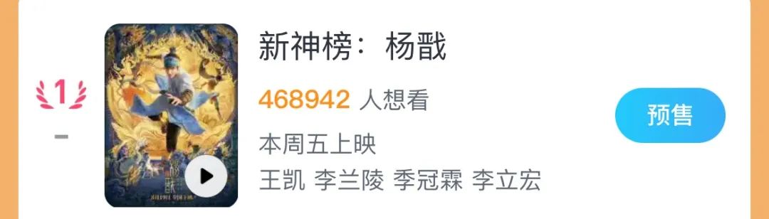 国漫种子选手追光动画旗下,《新神榜》序列继《哪吒重生》后的第二弹。淘票票想看榜第一。