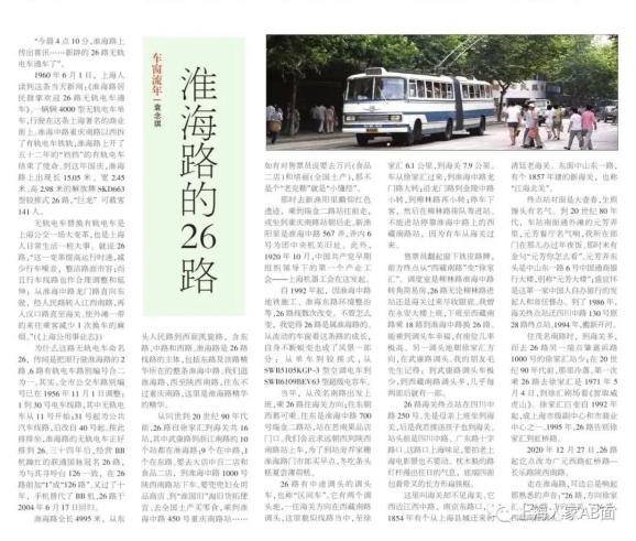 “今晨4点10分,淮海路上传出喜讯……新辟的26路无轨电车通车了”。