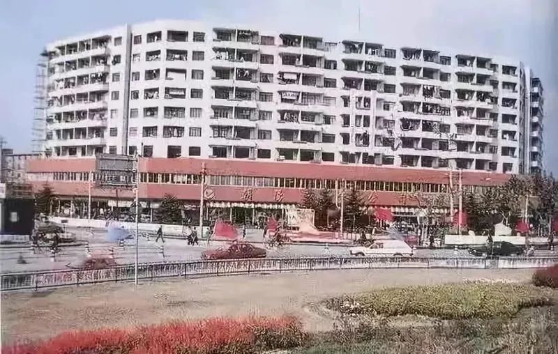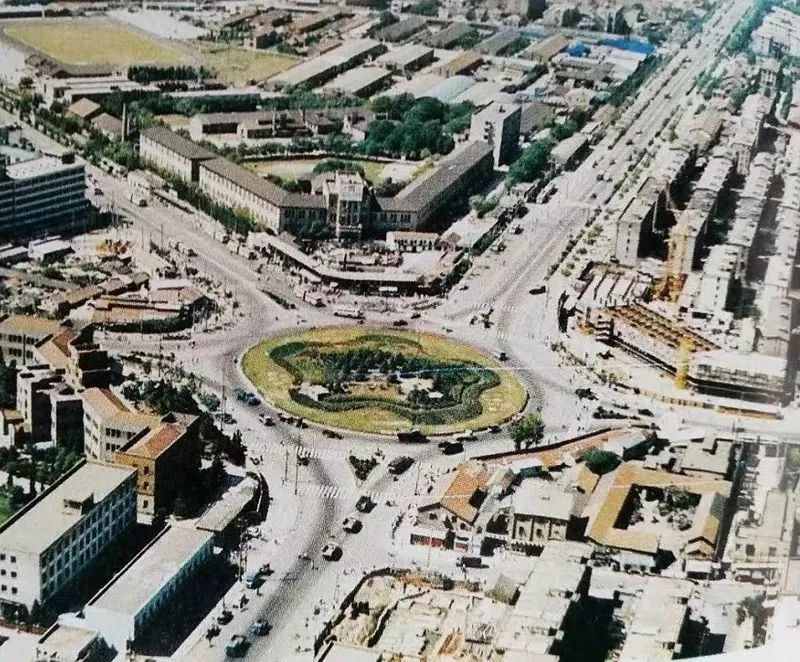 二十世纪末,五角场的标志地标朝阳百货和区域鸟瞰图