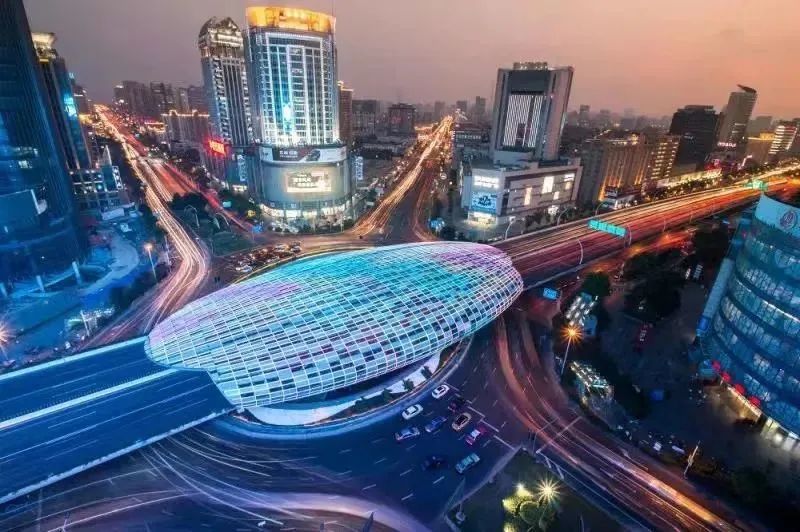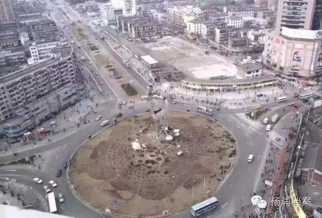五角场从“大转盘”到“小巨蛋”今昔对比(图源:“杨浦档案” 公众号)