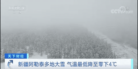 在青河县三道海子景区,突如其来的降雪将大地染成一片白色,部分山谷积雪厚度超过10厘米,伴随着降雪,当地山区最低气温下降到零下4℃。