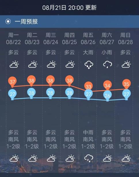 柳州未来一周最高温达38℃周五之后气温稍有下降