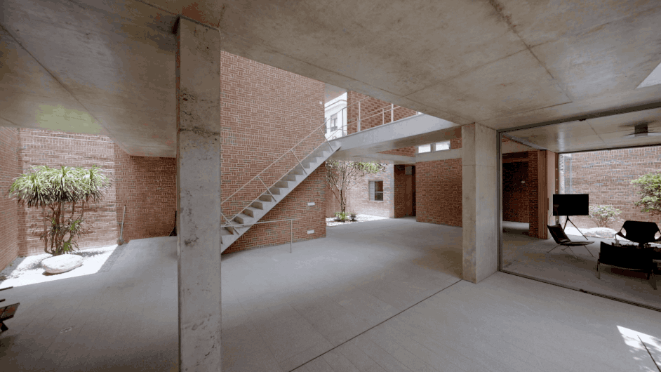 这才发现,我们其实一直是在一个庭院里游走,只不过不同区域的室内外属性不同,相互嵌套、转换,营造出一种很有趣的体验。