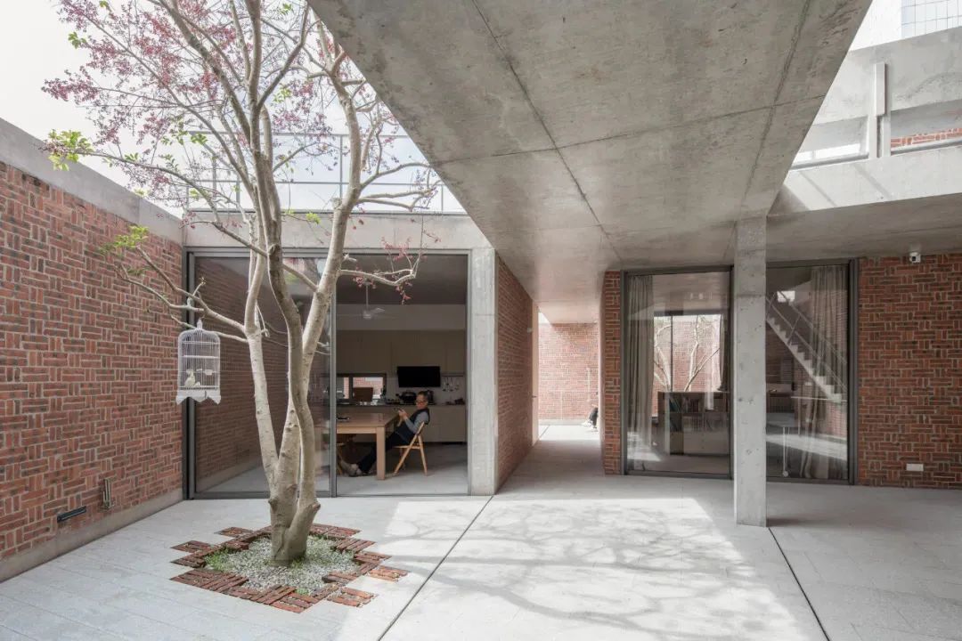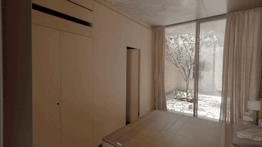 房间之间也植入小的院子,带去采光和通风,形成一个院子、一个功能区、一个院子这样虚实交错的“九宫格”。