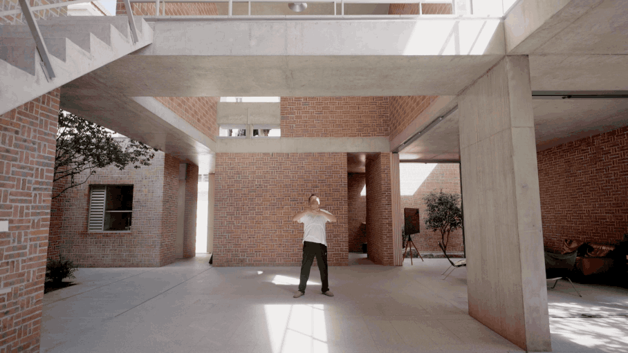 但我们这里也提供一个比较特别的样本,就是完全从本土的材料、样式研究出发而产生的一个新的可能性。最开始村里邻居都觉得这是在建个啥玩意,建好之后来参观就觉得确实还挺好的。它也满足了风水,也符合当地日常的生活习惯,但是又有别于传统自建房阴暗、狭小的空间,开放、流动而自由。