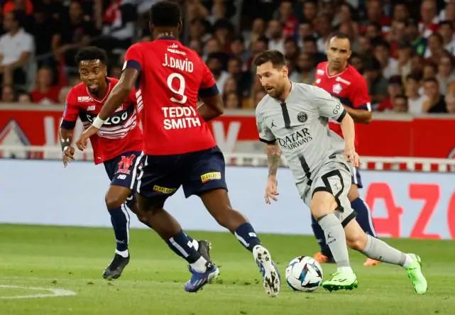 巴黎圣日耳曼队球员梅西(右二)在比赛中带球突破北京时间22日凌晨,2022/23赛季法甲第3轮一场焦点战展开角逐,巴黎圣日耳曼客场7比1大胜里尔。大巴黎阵中的阿根廷球星梅西贡献了1个进球和1次助攻,不仅成为2022年五大联赛助攻最多的球员,还以773粒进球超越772球的罗马里奥,上升到历史射手榜第三位。截至目前,排在梅西之前的是C罗和比坎,两人职业生涯分别打进815球和805球。