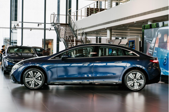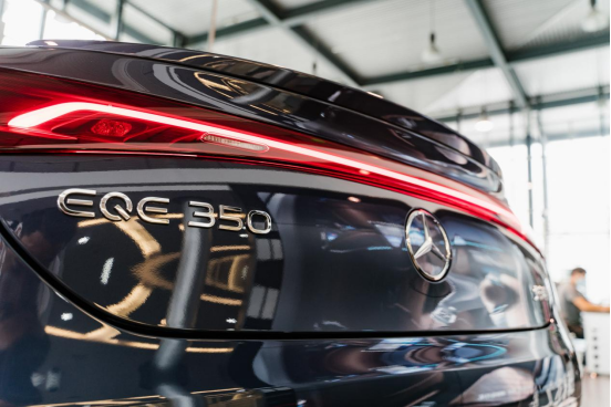 在奔驰4S店里,我们与这台全新EQE有了第一次接触,它被放在了整家4S店的“C位”,进门就能看到。而全新EQE的外观,也完全担得起众人的凝视。相较此前一系列官方发布的图片和视频,现场看到全新EQE的第一反应是,整车在承接EQ品牌全新设计语言的同时,极具豪华车应有的质感。