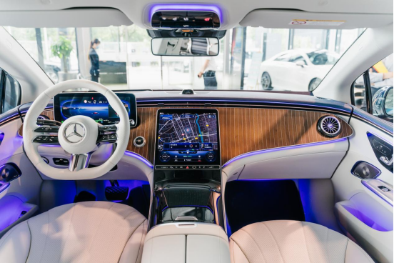 如果说外观给人的感觉是科技和优雅的话,那内饰还要在这两层元素的基础上,增加一些“未来感”。而这份“未来感”的来源,就是全新EQE所代表的当下纯电豪华车型中尖端的智能水平。