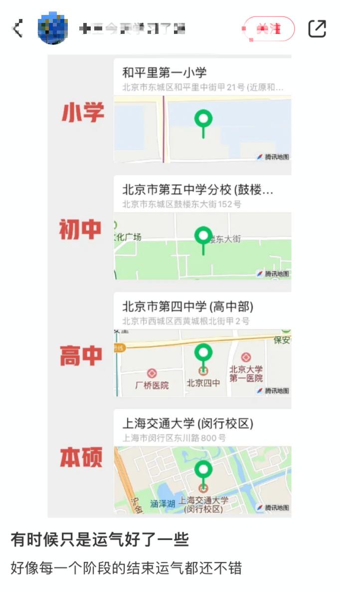 随机选中一个上学轨迹的热门帖,要么是最终上了清华,要么上过清华附中、清华附小,让人看完除了跟着评论区心生自卑,也得感叹一句“大人,时代变了”。