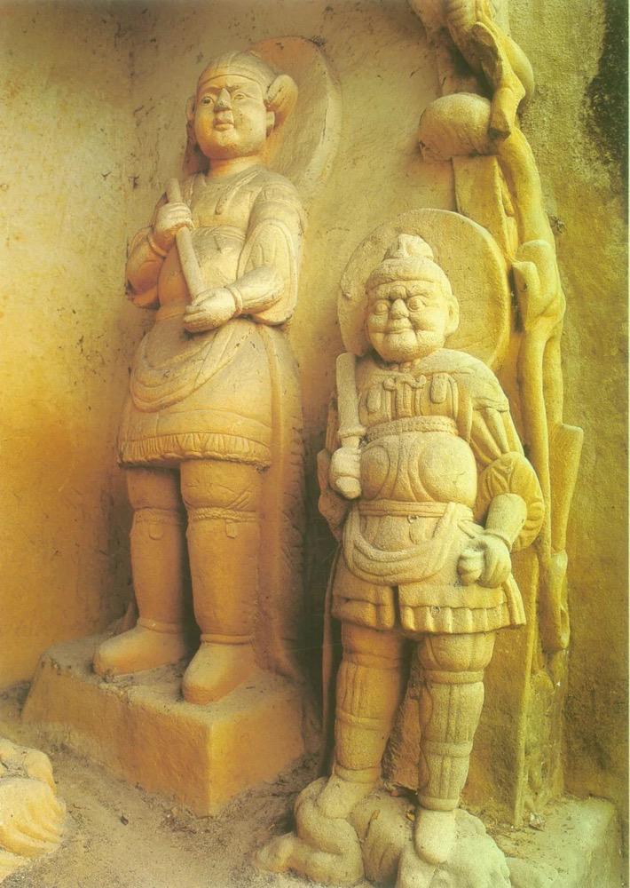巴中南龛石窟第93窟中的哪吒——毗沙门天王之子那吒俱伐罗 ( 左 )