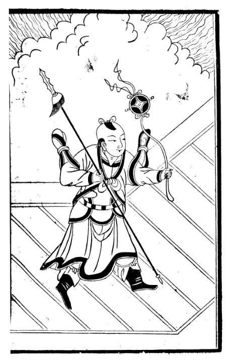 到了我中土,除了著名的定制轮滑鞋“风火轮”还保留着“火焰三昧”的异域风情,其余装备整体上国产化了,什么乾坤圈、混天绫、乾坤弓、震天箭、火尖枪、灵符秘诀、豹皮囊等等,在中华传统武库和法器库中都能找到依据——比如乾坤圈就能对应于“环”,而混天绫,则类似于“练”。