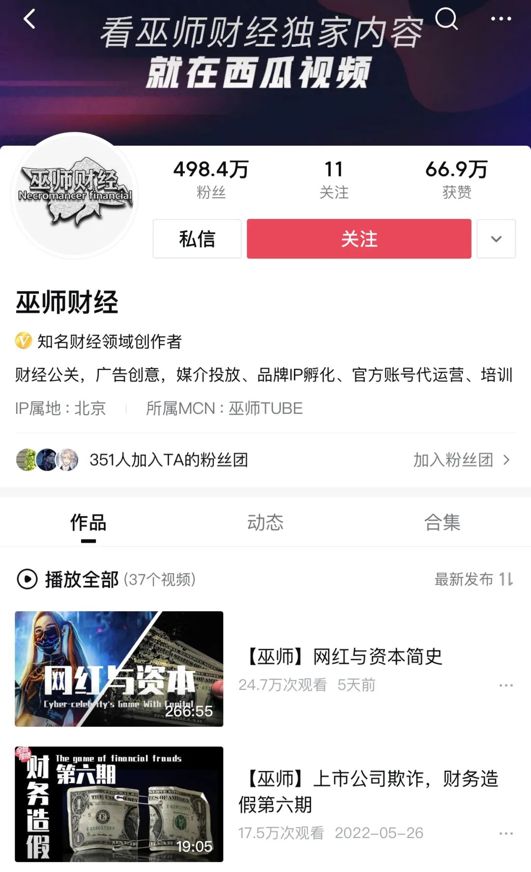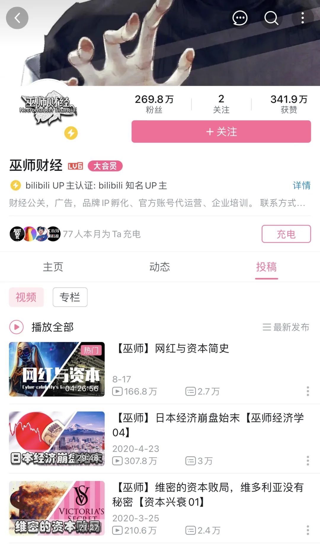 随后,巫师财经相继推出“资本与明星”“资本战争”等系列作品,从资本角度解读商业现象,同样获得热捧。彼时,B站大多数泛知识UP主仍在摸索,巫师财经切到第一块蛋糕,一时间风头无两。