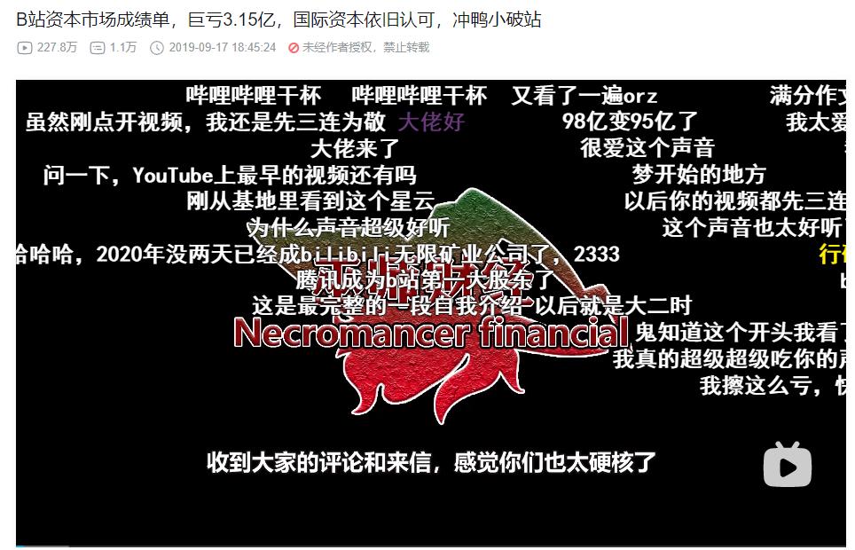 2019年9月,巫师财经在B站发布了一条9分钟的视频,以风趣活泼又不失深度的方式解读B站的资本市场成绩单。这则作品的播放量超过200万,让巫师财经在两个月内积攒了百万粉丝。