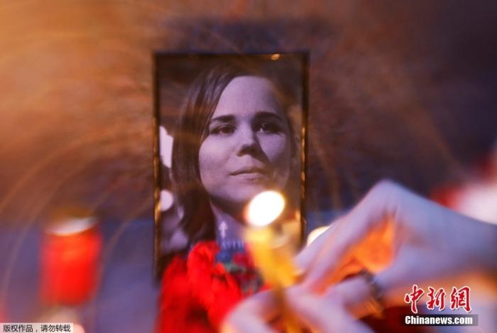 8月22日,俄罗斯民众用鲜花和烛光纪念杜金娜。