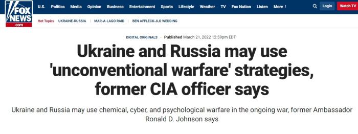 2022年3月,美国中情局前官员分析,乌俄或采用“非常规”战术。图片来源:福克斯新闻报道截图