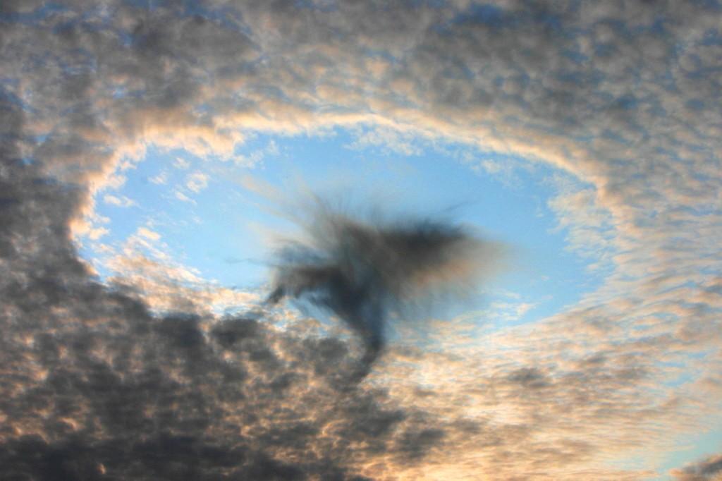几乎每年都有人在全世界各地拍到一种奇怪的云:云中间破了个洞。