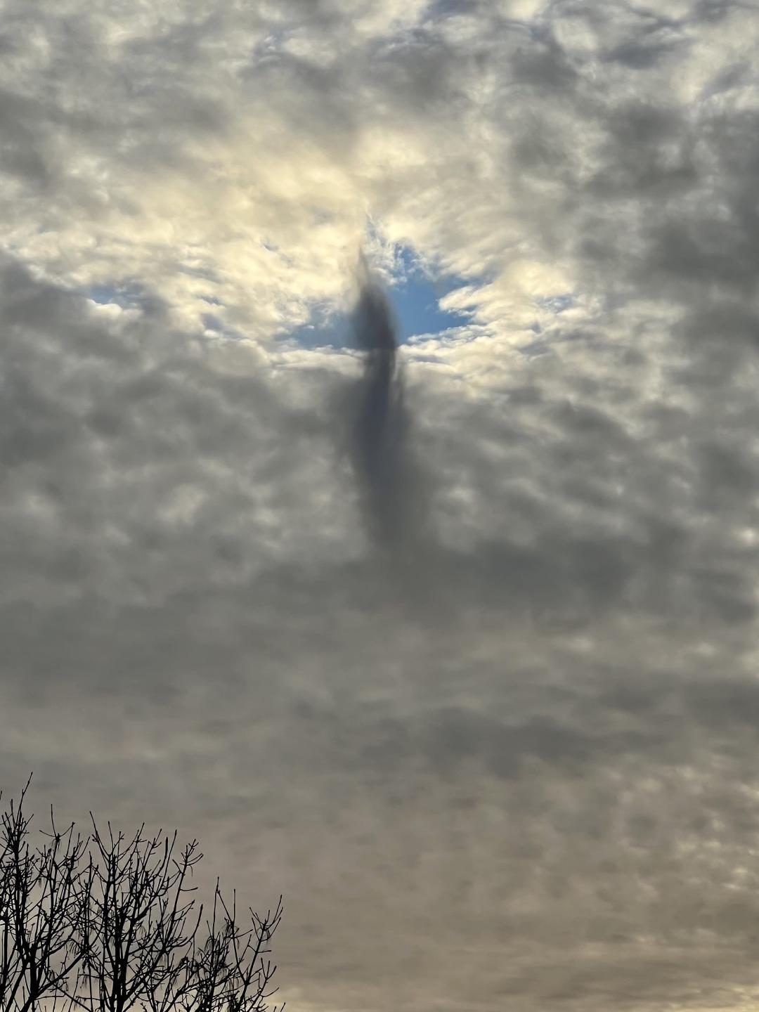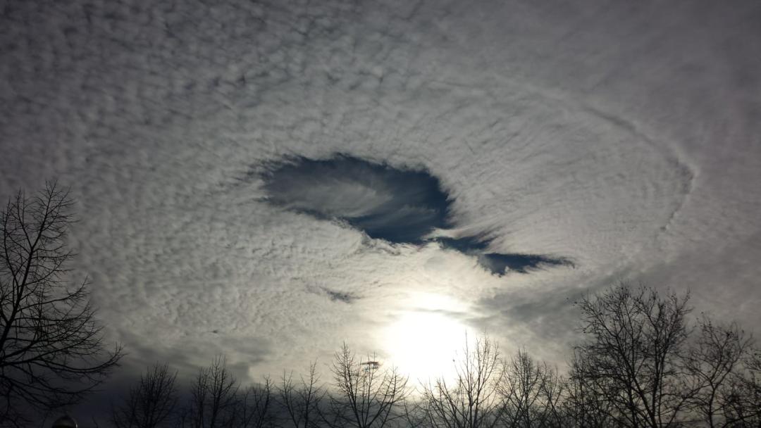 其实专业上,这是一种被称为“雨幡洞云”(Fallstreak hole)的现象,通常出现在卷积云或高积云中。