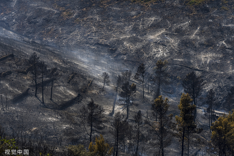 当地时间2022年8月19日,西班牙Altura,被大火烧焦的森林。